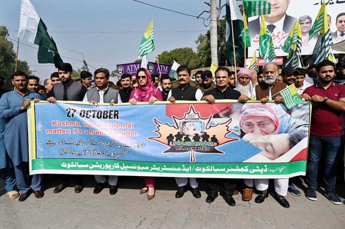 Deputy Commissioner Saba Asghar Ali leading a rally along with others to mark Kashmir Black Day.