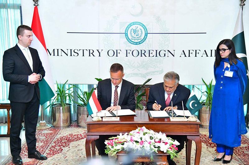 Deputy Prime Minister and Foreign Minister Senator Mohammad Ishaq Dar and Hungarian Minister of Foreign Affairs and Trade Peter Szijjarto sign memorandum of understanding (MoUs) in the fields of Culture (2025-27), Archeology and Cultural Heritage, and mutual visa exemption for holders of Diplomatic Passports