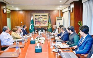 ISLAMABAD: June 19 - Deputy Prime Minister and Foreign Minister, Senator Mohammad Ishaq Dar chairing a high-level meeting to discuss challenges facing the power sector. APP/MAF/TZD
