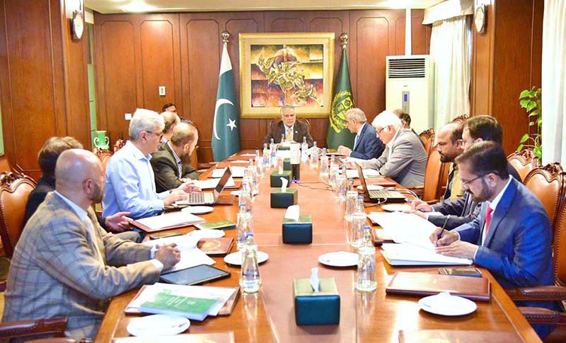 ISLAMABAD: October 30 – Deputy Prime Minister and Foreign Minister, Senator Mohammad Ishaq Dar chairing a meeting to review the existing infrastructure of the petroleum sector, including RLNG and allied areas. APP/TZD
