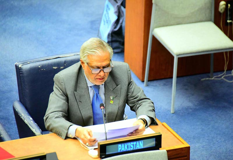 NEWYORK: September 23 - Deputy Prime Minister and Foreign Minister Senator Mohammad Ishaq Dar delivered statement at an OIC High-Level Event on Peace and Tolerance on the margins of the 80th Session of the UN General Assembly. APP/FHA
