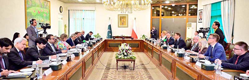 Deputy Prime Minister and Foreign Minister Senator Mohammad Ishaq Dar in a delegation-level talks with his Polish counterpart Radoslaw Sikorski at the Ministry of Foreign Affairs