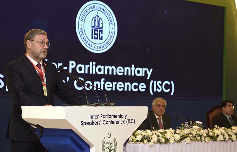 ISLAMABAD: November 12 - Deputy Speaker Federation Council of Russia Konstantin Kosachev addressing the Inter-Parliamentary Speakers’ Conference (ISC). APP/IFD/MAF/TZD