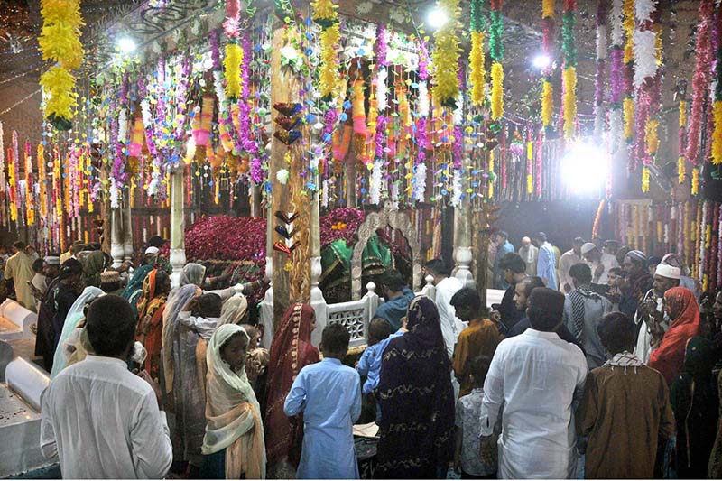 - Devotees offering fateha at the shrine of Hazrat Shah Rukn-e-Alam during the 712th Urs celebrations.