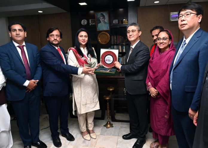 Director News APP, Shumaila Andleeb, presenting a souvenir to Mr. Gao Anming, Editor-in-Chief of China International Communications Group (CICG), during the visit of a delegation from the Academy of Contemporary China & World Studies (ACCWS) to the Associated Press of Pakistan (APP) Headquarters.
