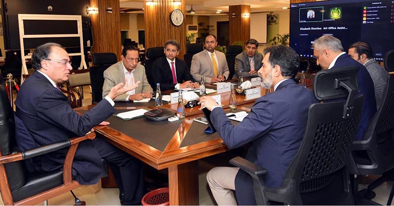 ISLAMABAD: March 30 – Federal Minister for Finance and Revenue, Senator Muhammad Aurangzeb, holding a meeting with Dr. Reza Baqir and the Alvarez & Marsal delegation to discuss investment partnerships and avenues for strengthened economic cooperation. APP/FHA