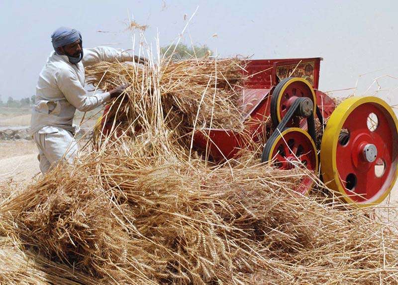 BAHAWALPUR: April 29 – Farmers busy in collecting and shifting wheat for threshing in their field.