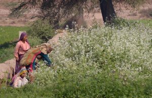 Farmer women are busy collecting vegetable (Moongre) in the field