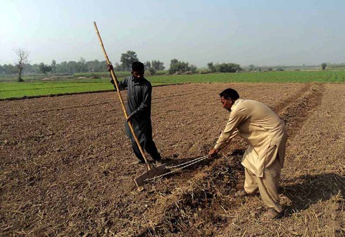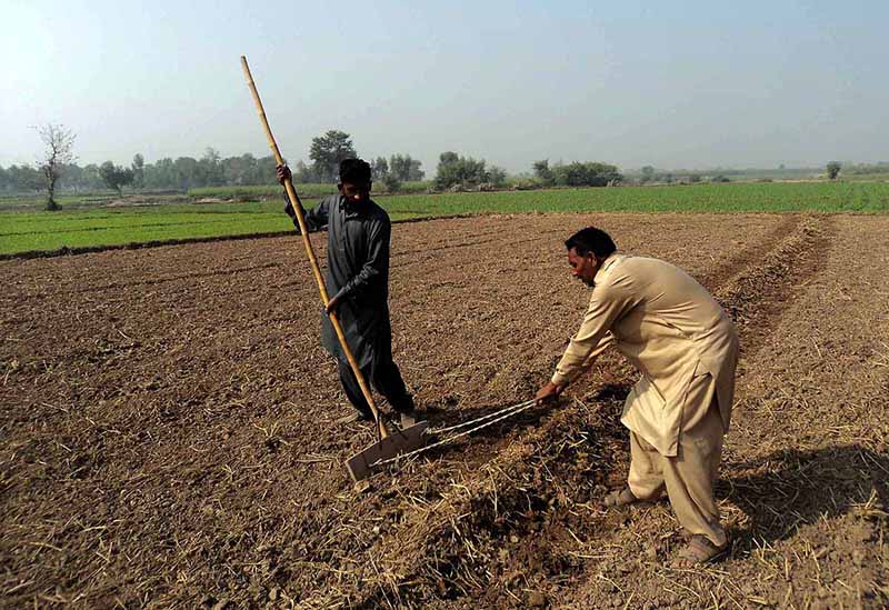 CHINIOT: November 15 – A farmer spreading fertilizer in his farm field. APP/FHA
