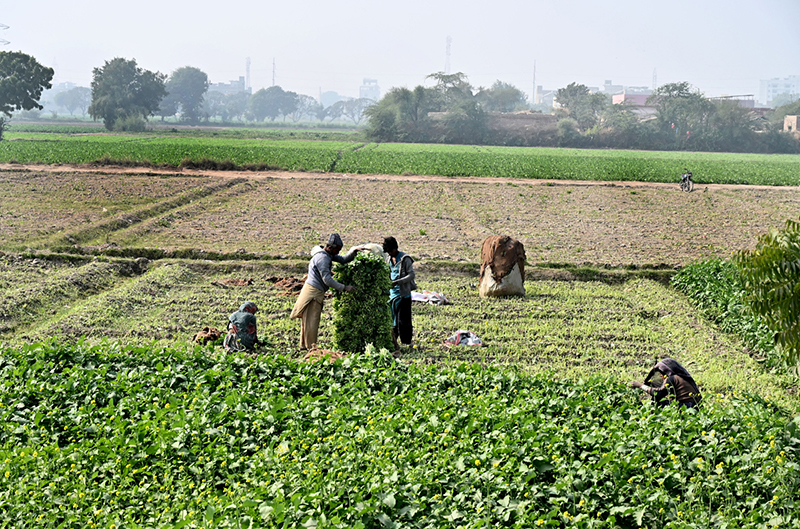 Farmers collecting and packing spinach for delivery to vegetable market at filed area.