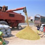 Farmers using a harvester machine to harvest rice in the fields on the outskirts of the city APP16-250924SARGODHA: September 25 Previous Post A laborer threshing paddy with a machine during the harvest season after collecting the rice crop at Adda Bori, Jhang Road outskirts area in the city. Next Post A vendor selling goat kids near the general bus stand in the city.
