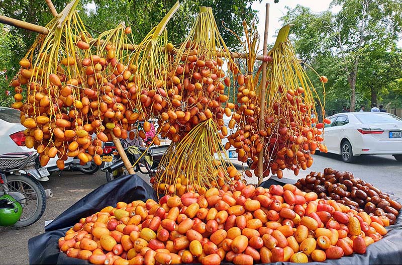 A vendor displaying fresh dates to attract the customers at his roadside setup in Federal Capital