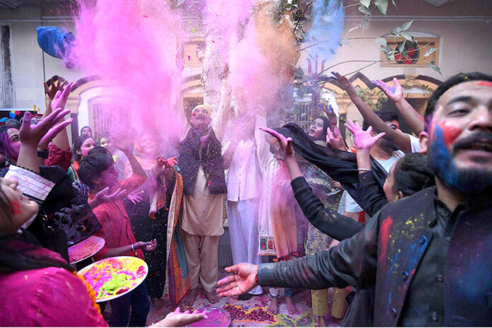 PESHAWAR: March 18 – Hindu community celebrating Holi, the Hindu Festival of color organized by Hum Log at Kala Bari Mandir. APP/SYR/ABB