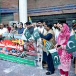 Students are participating in a rally to against India’s illegal and unilateral actions on 5 August 2019 in Indian Illegally Occupied Jammu and Kashmir (IIOJK) to mark Youm-e-Istehsal Kashmir (Exploitation Day), express solidarity with Kashmiri people at the Banazir chowk to Ghari Bagh organized by District Administration.