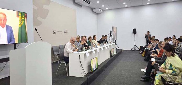 Federal Minister for Climate Change and Environmental Coordination Senator Dr. Musadik Masood Malik delivering a virtual keynote address from Islamabad at the high-level international dialogue on “Cryosphere Adaptation & Disaster Risk Reduction,” held on the sidelines of the COP30 Climate Summit in the Brazilian Amazonian city of Belém.
