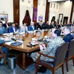 APP22-100425 ISLAMABAD: April 10 – Federal Minister for Climate Change and Environmental Coordination Senator Musadik Masood Malik and Minister of State for Climate Change Dr. Shezra Mansab Ali Khan Kharal addressing a press conference at PID Media Center.