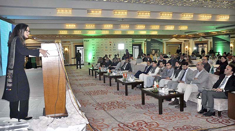 Federal Minister for Climate Change, Senator Sherry Rehman, addressing during the launching ceremony of Pakistan Humanitarian Forum (PHF) Annual Report-2022