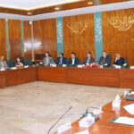 Federal Minister for Commerce, Jam Kamal Khan presenting a souvenir to H.E. Muhammad bin Sulaiman Al Kindi, Governor of North Al Batinah. Standing beside the governor is Engr. Said Al Abri, Chairman of Sohar Chamber of Commerce, while Syed Naveed Safdar Bokhari, Ambassador of Pakistan to Oman, stands alongside the Minister.