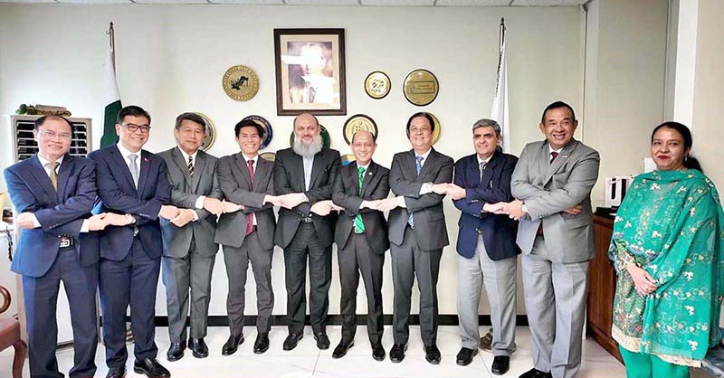 Federal Minister for Commerce Jam Kamal Khan with Ambassadors of ASEAN member states, standing hand-in-hand – symbolizing unity, partnership and a shared commitment to stronger trade and economic ties.