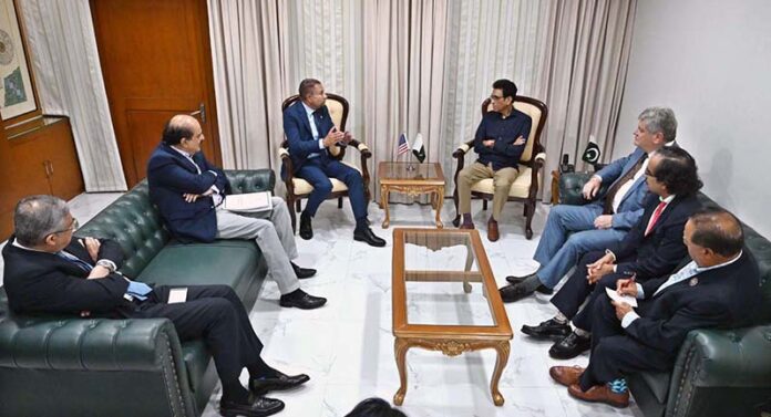 ISLAMABAD: July 04 – Federal Minister for Education and Professional Training, Dr. Khalid Maqbool Siddiqui meeting with Deputy Speaker of New York State Assembly Mr. Philip Ramos at Ministry of Education.
