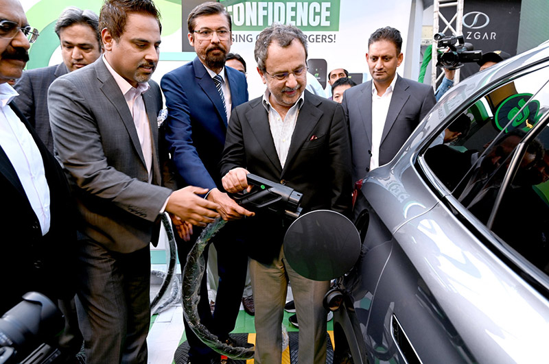 Federal Minister for Energy (Power Division) Sardar Awais Ahmad Khan Leghari inaugurates the GO green Avenue the future of sustainable Mobility Pakistan first 120KW -240KW Fast Charging station under the initiative of the Ministry of Energy