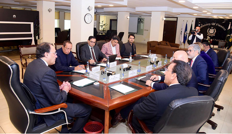 ISLAMABAD: November 08 - Federal Minister for Finance and Revenue, Senator Muhammad Aurangzeb, in a meeting with a VEON Group delegation, led by Founder and Chairman of the Board of VEON Group, Augie K. Fabela, at the Finance Division. APP/ABB