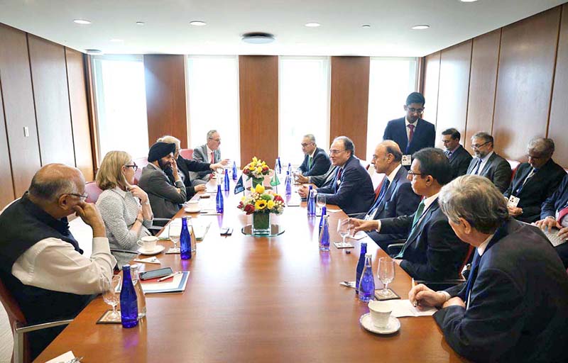 APP13-220425 WASHINGTON: April 22 – Federal Minister for Finance and Revenue Senator Muhammad Aurangzeb meeting with Ajay Banga, President World Bank Group, in Washington D.C.