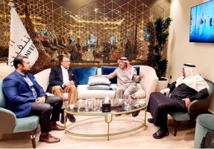 Federal Minister for Finance and Revenue, Senator Muhammad Aurangzeb meeting with Mohammed bin Abdullah Al-Jadaan, Minister of Finance, Kingdom of Saudi Arabia, who earlier extended a special welcome to the Minister on his arriving in the KSA to attend the Emerging Markets Conference in Alula, KSA. Minister of State, Member of the Council of Ministers, Dr. Hamad Mohammed Al Sheikh, KSA, and Advisor to Finance Minister, Pakistan, Mr. Khurram Schehzad are also present