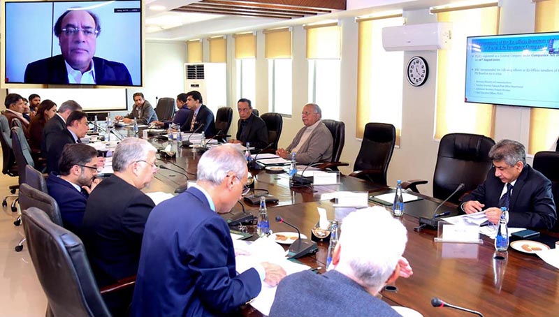 Federal Minister for Finance and Revenue Senator Muhammad Aurangzeb virtually chairing a meeting of the Cabinet Committee on State-Owned Enterprises (CCoSOEs) at the Finance Division.