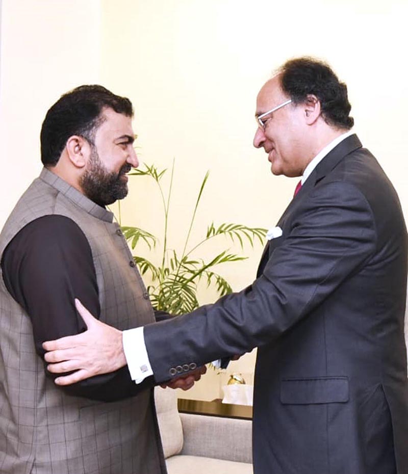 Federal Minister for Finance & Revenue Senator Muhammad Aurangzeb meets with Chief Minister of Balochistan Sarfraz Bugti to discuss matters of provincial significance. The Finance Minister assured support and cooperation for the development of Balochistan.