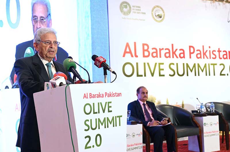 ISLAMABAD: October 21 – Federal Minister for Industries and Production, Rana Tanveer Hussain in a group photo with the participants at the Al-Baraka Pakistan Olive Summit in a local hotel. APP/SAK/TZD/ABB
