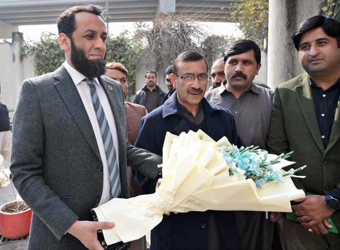 ISLAMABAD: February 02 – Federal Minister for Information and Broadcasting Attaullah Tarar being received by Managing Director Associated Press of Pakistan (APP) Muhammad Asim Khichi during his visit to APP Headquarters. APP/SAK/MAF/TZD