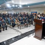 Federal Minister for Information and Broadcasting Attaullah Tarar presenting souvenir to PIO Mobashir Hassan during a Christmas Eve ceremony organized by the National Press Club Islamabad, in collaboration with Medic Galleria and the Zakat Foundation of America.