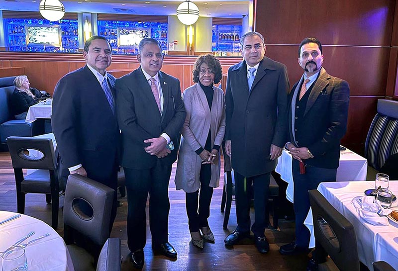 Federal Minister for Interior Mohsin Naqvi attending a dinner reception hosted by US Congressmen Henry Cuellar and Maxine Waters during his official visit to the United States.