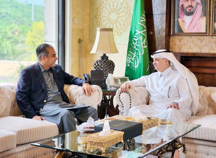 Federal Minister for Interior Mohsin Naqvi in a meeting with Ambassador of Saudi Arabia Nawaf bin Said Ahmed Al-Malilki.