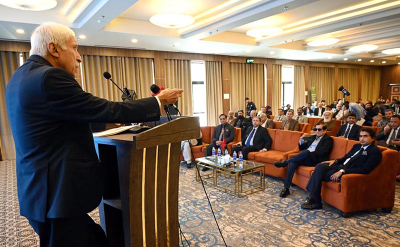 ISLAMABAD: January 17 – Federal Minister for Maritime Affairs Qaiser Ahmed Sheikh addresses the National Workshop on the Promotion of Aquaculture in Pakistan Ministry of Maritime Affairs at local hotel.