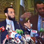 FAISALABAD: February 23 – Federal Minister for Maritime Affairs Qaiser Ahmed Sheikh addresses the opening ceremony of the Silver Jubilee celebrations of Chiniot Islamia School & College Canal Road on 25 years of its excellence.