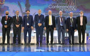 ISLAMABAD: February 18 – Federal Minister for Petroleum, Dr. Musadik Malik in a group photograph with participants during the 30th Annual Technical Conference and Oil Show Exploring Frontiers and Revitalizing Mature Basins of Pakistan at Pak-China Friendship Centre. APP/SAK/MAF/TZD/FHA