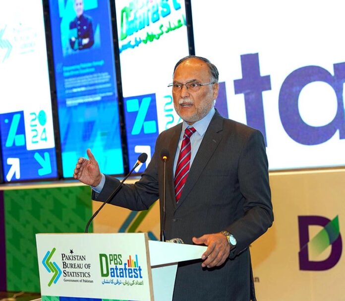 Federal Minister for Planning, Ahsan Iqbal addressing the inaugural ceremony of DataFest 2024, an event organized by the Pakistan Bureau of Statistics.