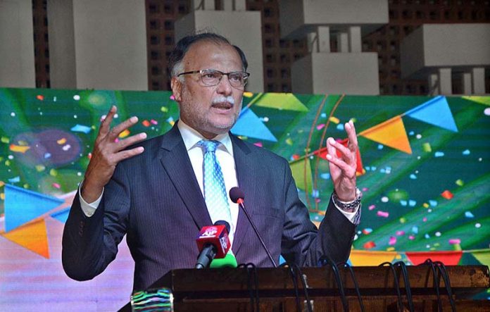 Federal minister for planning and development and special initiatives Professor Ahsan Iqbal addressing at a ceremony 4th policy making competition (PMC)
