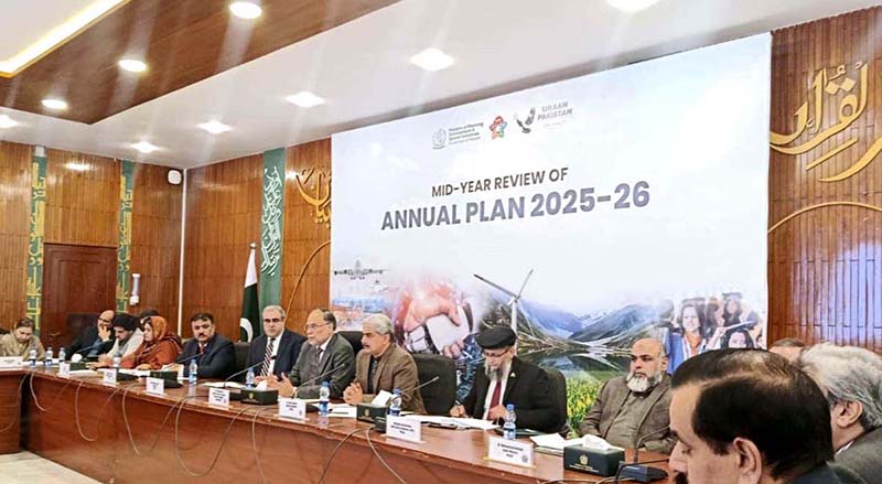 Federal Minister for Planning, Development and Special Initiatives, Ahsan Iqbal, chairing the Mid-Year Review Meeting of the Annual Plan 2025–2026.