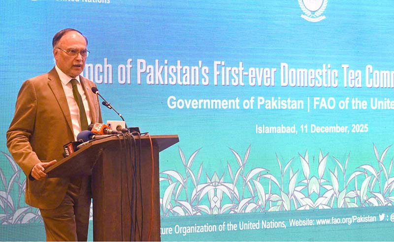 ISLAMABAD: December 11 – Federal Minister for Planning, Development and Special Initiatives, Professor Ahsan Iqbal, addresses a seminar on Tea Commercialization and the Cluster-Based Development Plan for Pakistan’s tea industry at a local hotel. APP/SMR/MAF/TZD/SSH