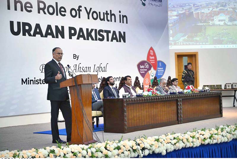 PESHAWAR: March 12 – Federal Minister for Planning Development & Special Initiatives Prof. Ahsan Iqbal addressing during a seminar on “The Role of Youth in Uraan Pakistan” at Institute of Management Sciences. APP/SYR/TZD