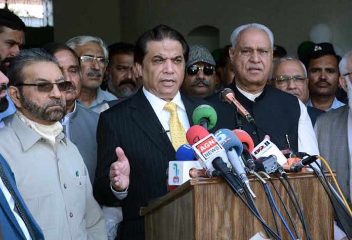 Federal Minister for Railways Hanif Abbasi talks to media after inaugurating upgraded facilities at Faisalabad Railway Station.