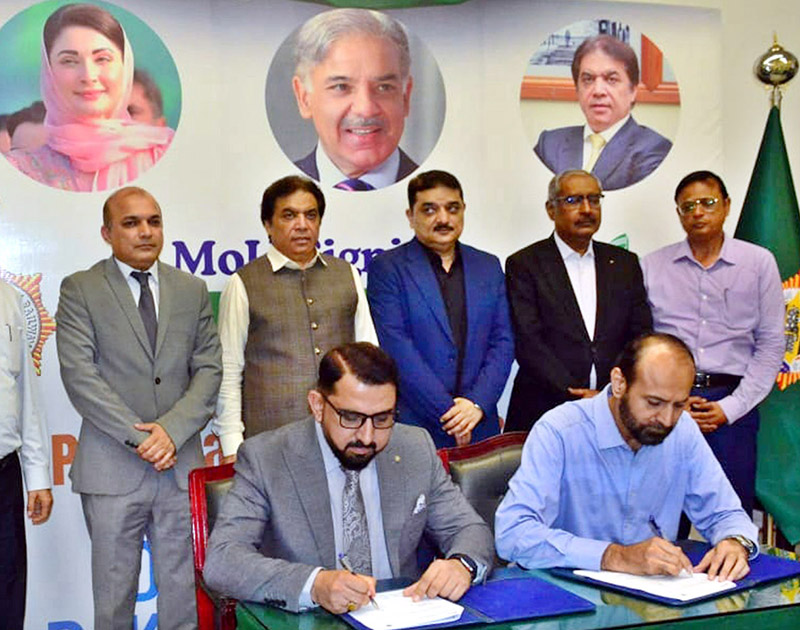 APP35-010725 LAHORE: July 01 – Federal Minister for Railways Hanif Abbasi witnesses the signing of an agreement with PITBULL at the Committee Room of Railway Headquarters. APP/MAF/TZD/SSH