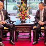 LAHORE: May 10 – Federal Minister for Religious Affairs and Interfaith Harmony Chaudhry Salik Hussain bidding farewell to pilgrims at Allama Iqbal International Airport. APP/MAF/FHA