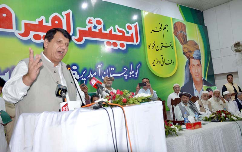 QUETTA: September 27- Federal Minister for States and Frontier Regions (SAFRON) Amir Muqam addresses a ceremony in honoring the hard work and dedication of coal mine workers.