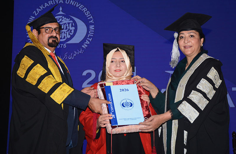 MULTAN: February 17 – Federal Minister for State education professional training Ms.Wajiha Qamar addressing the 20th convocation at the Bahauddin Zakariya University. APP/SFD/MAF/TZD/FHA