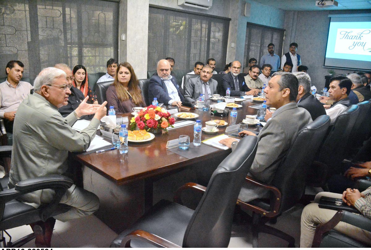KARACHI: May 22 – Federal Ombudsman Ejaz Ahmed Qureshi addressing a press conference after meeting with the representatives of various federal government departments/agencies at the Ombudsman Secretariat.