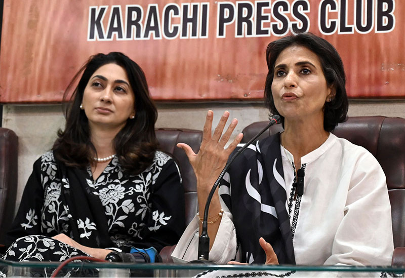 Federal Ombudsperson for Protection against Harassment (FOSPAH), Fauzia Viqar, addresses a press conference at the Karachi Press Club